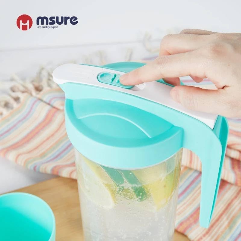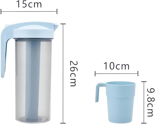 AREXOL - إبريق بلاستيك متعدد الأغراض للمشروبات الباردة والساخنة من اريكسول، محمول وموفر للمساحة للثلاجة والنزهات، إبريق سعة 1.2 لتر مع عصا ثلج و4 أكواب بلاستيك