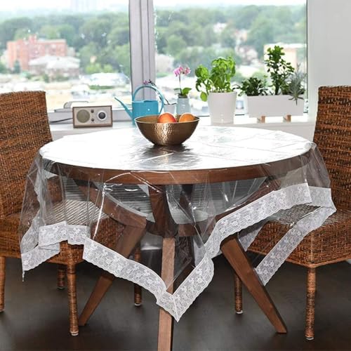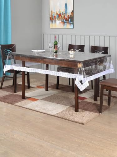 AREXOL - مفرش طاولة من الجلد الشفاف مصنوع من بلاستيك بي في سي، واقي طاولة طعام مقاوم للماء وقابل لإعادة الاستخدام مع حواف مخيطة أنيقة للمطبخ والضيوف من اريكسول، مقاس 1.50 × 2 متر