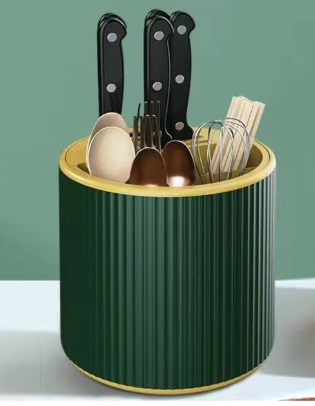 AREXOL - حامل أدوات وسكاكين دوار للمطبخ مع تصريف ذكي ومنظم بسعة كبيرة للمعالق والشوك والادوات بتصميم أنيق موفر للمساحة من اريكسول