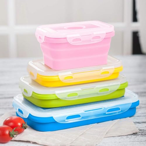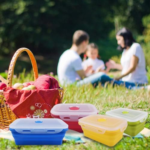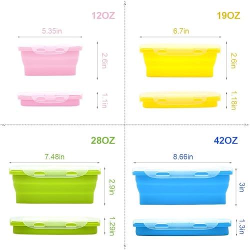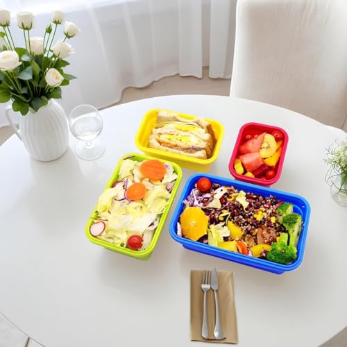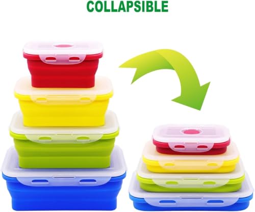 AREXOL - مجموعة من 4 حاويات طعام سيليكون قابلة للطي مع اغطية امنة للاستخدام في الميكروويف والفريزر للتخزين واعداد الوجبات من اريكسول، 350 مل الى 1200 مل