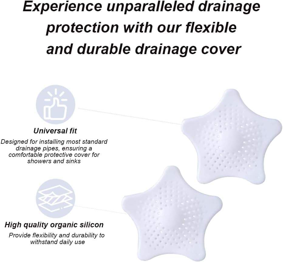 - 【شكل نجمة مرنة】 يغطي تصميم نجمة السيليكون الفريد مساحة حوض أكبر من المصافي القياسية، مما يلتقط المزيد من بقايا الطعام والشعر بفعالية مع الحفاظ على مظهر أنيق وعصري يكمل ديكور أي مطبخ أو حمام.