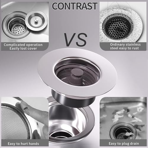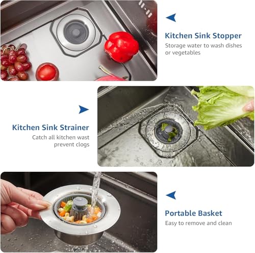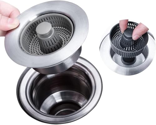 AREXOL - مصفاة حوض سيليكون من اريكسول مع زر سدادة تصريف وفلتر طعام - ملحق مطبخ سهل التنظيف للاستخدام اليومي ومنع الانسداد