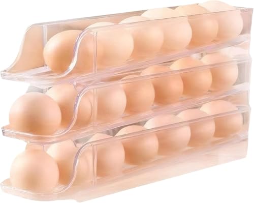 AREXOL - مجموعة صواني بيض قابلة للرص، حاملات بيض شفافة من الأكريليك للاستخدام في الثلاجة والمطبخ، تصميم موفر للمساحة وهيكل متين من أريكسول، 3 قطع