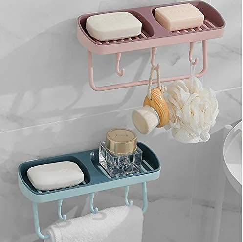AREXOL - رف دش يثبت على الحائط مع طبق صابون مزدوج وقضيب منشفة من اريكسول - رف منظم حمام لاصق للتخزين والتعليق - لا حاجة للثقب