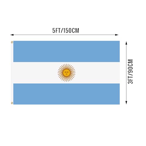 xepaxon - علم الارجنتين الوطني 3 × 5 قدم، اعلام الارجنتين الوطنية مع حلقات نحاسية للاستخدام الداخلي والخارجي والحفلات والفناء والحديقة وديكورات الشوارع