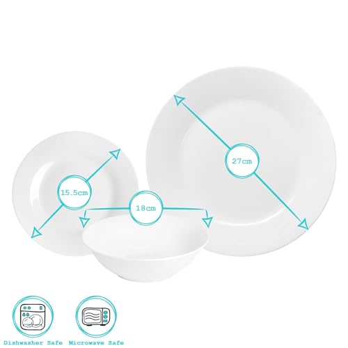 Argon Tableware - طقم أواني مائدة، 6 أطباق عشاء و6 أطباق للحلويات و6 أطباق عميق للمكرونة و6 بولات للحبوب من ارجون، 18 قطعة، أبيض