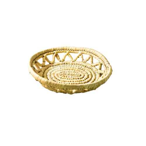 Egypt Antiques - طبق مقطوع دائري مصنوع يدويًا وطبيعي 100% من النخيل المجفف من اريد 21.6 سم × 24.1 سم × 5.1 سم