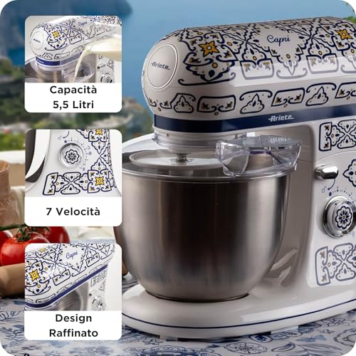 Ariete - خلاط كابري 1588، خلاط كوكبي، 7 سرعات، 2400 واط، 5.5 لتر، كوب من فولاذ مقاوم للصدأ من اريتي