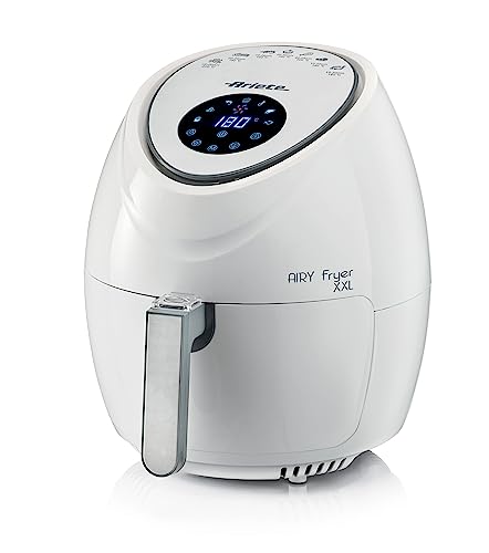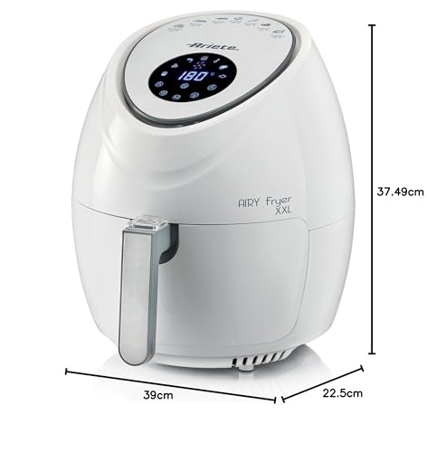 Ariete - مقلاة هوائية 4618 مقاس 2 اكس لارج XXL، سعة 5.5 لتر، وزن 2.5 كجم، 1800 وات، أقصى درجة حرارة 200 درجة مئوية تعمل بمؤقت من اريتي، لون أبيض
