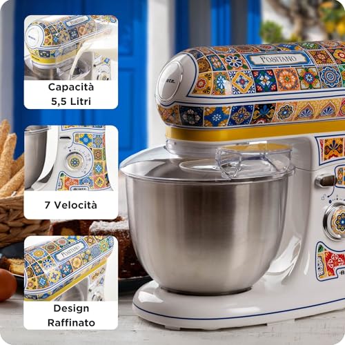 Ariete - خلاط كوكبي 1588 بوسيتانو من اريتي، 7 سرعات، 2400 وات، 5.5 لتر، كوب من الفولاذ مقاوم للصدأ