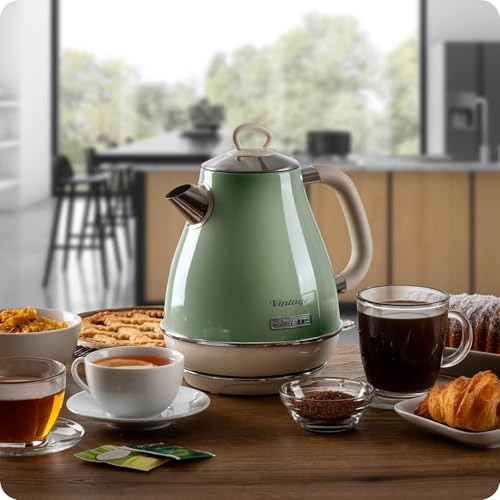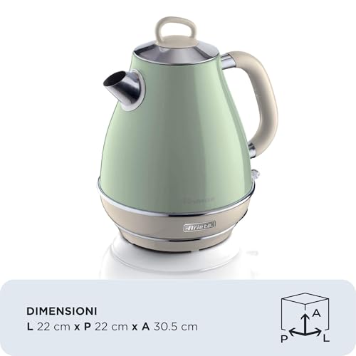 Ariete - غلاية كهربائية بتصميم عتيق من الفولاذ المقاوم للصدأ مع ميزة مقياس مرئي لمستوى المياه وقاعدة لاسلكية 360 درجة وتقنية الإيقاف التلقائي من اريتي، سعة 1.7 لتر، 2000 وات، لون أخضر، موديل 2869