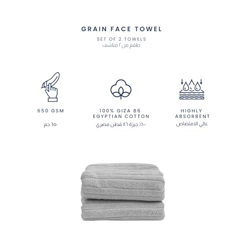 Ariika - فوطة وجه محببة ناعمة ومتينة وأنيقة مصنوعة من القطن المصري بنسبة 100% من اريكا، بلون رمادي (مجموعة من قطعتين) مقاس 1 م ×50 سم