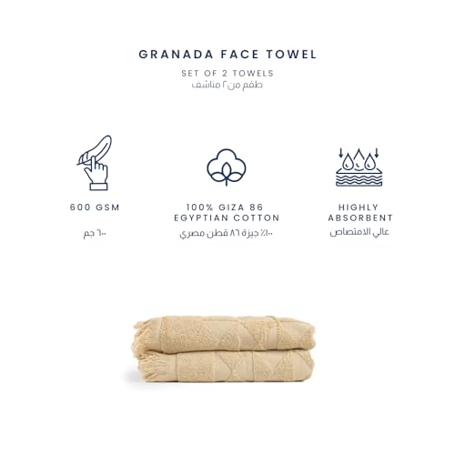 Ariika - فوطة وجه غرناطة بلون بيج من اريكا، مقاس 100 × 50 سم، مصنوعة من قطن جيزة 86 المصري بنسبة 100%، ناعمة ومتينة وأنيقة - طقم من 2 قطعة