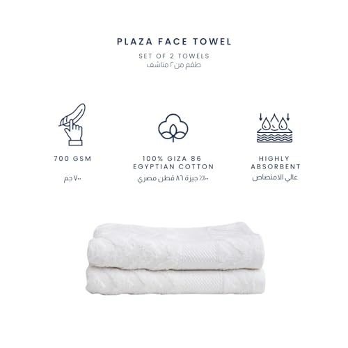 Ariika - طقم مناشف وجه منقوشة بلازا من اريكا، قطعتين - ابيض، قطن، Medium