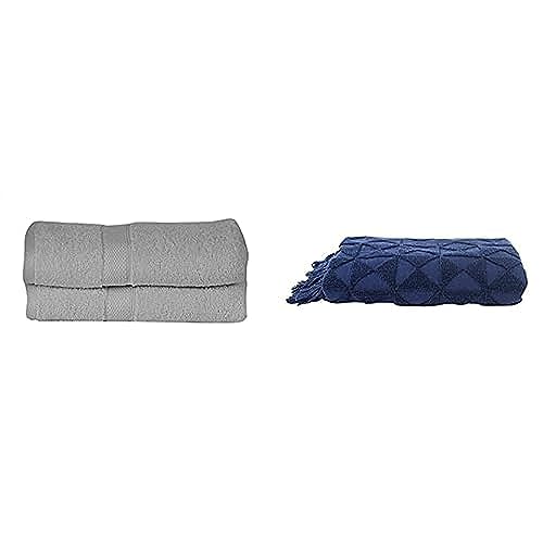 Ariika - فوطة وجه سينا مصنوعة من قطن مصري 100% جيزة 86 من أريكا، رمادي، مجموعة من قطعتين 100×50 سم مع فوطة حمام جرنادا مصنوعة من قطن مصري 100% جيزة 86 من أريكا، كحلي 140×70 سم