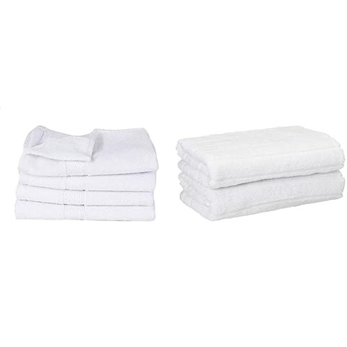 Ariika - مجموعة فوط يد سينا ابيض 33×33 سم (4 قطع) مع فوط وجه سينا بيضاء 100×50 سم من قطن الجيزة 86 المصري الفاخر 100% (قطعتين) من اريكا