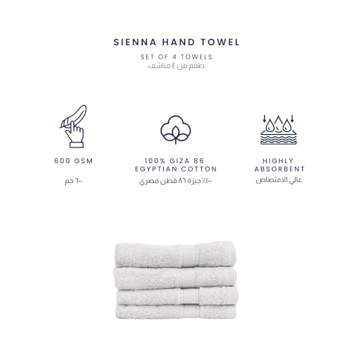 Ariika - فوط يد سينا مصنوعة من القطن المصري الجيزة 86 بنسبة 100%، فوط بخيوط مزدوجة شديدة الشد للنعومة والمتانة - 33×33 سم - عبوة من 4 قطع من اريكا