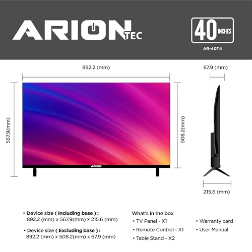 Arion - تليفزيون ال اي دي بشاشة 40 بوصة عالية الدقة HD بالكامل بدون إطار - اتصال واجهة وسائط متعددة عالية الوضوح (HDMI) ومنفذ USB - AR-40 T4 من اريون