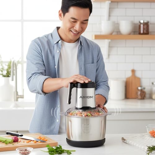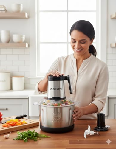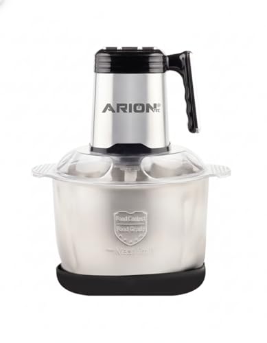 Arion - قطاعة احترافية من الفولاذ المقاوم للصدأ بقدرة 900 واط - سعة 4 لتر، تتميز بـ 3 سرعات وتروس معدنية قوية، وتتضمن أداة لخفق البيض من اريون (موديل: AR-4L)