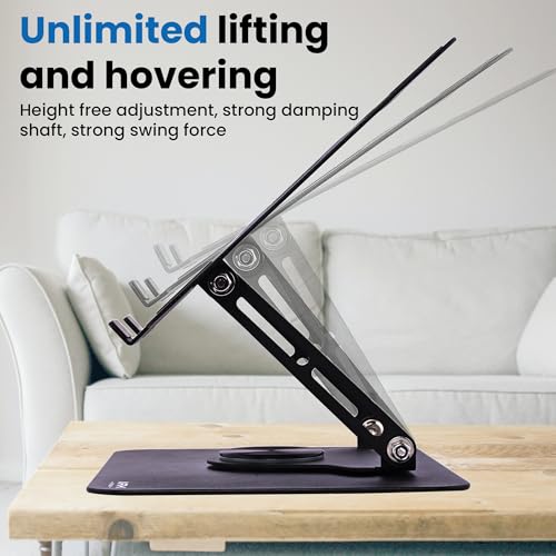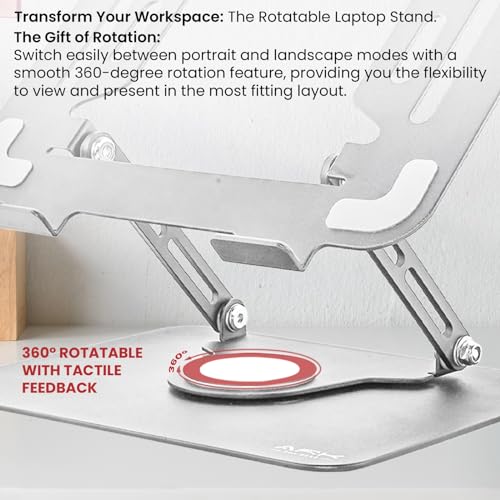 - دوران 360 درجة لعرض مثالي: استمتع بدوران سلس مع قاعدة حامل اللاب توب بزاوية 360 درجة. مثالي للاجتماعات والبث المباشر؛ شارك عملك بسهولة مع من حولك.