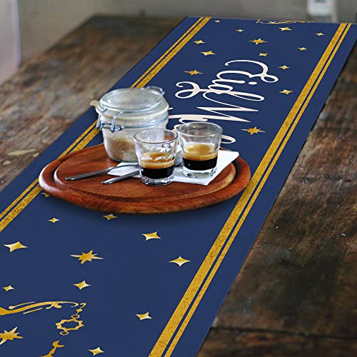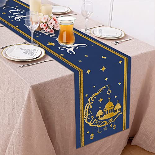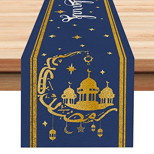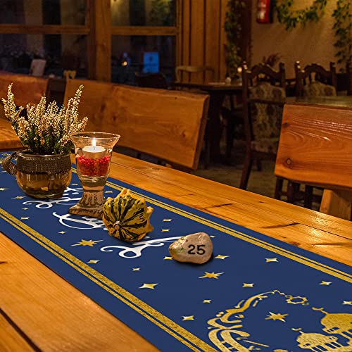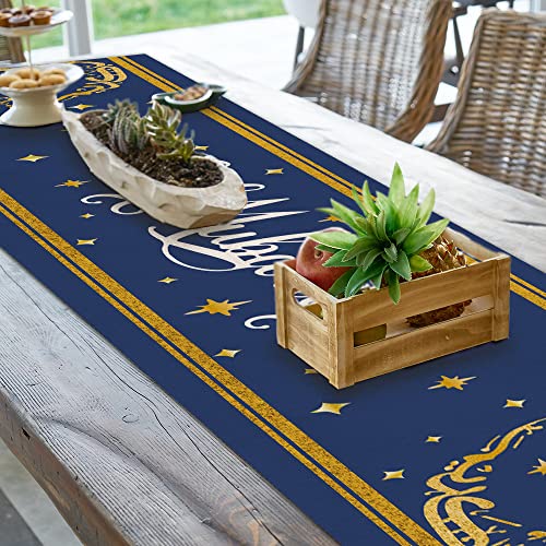 ARKENY - مفرش ترابيزة بتصميم قمر ونجوم وعبارة عيد مبارك مقاس 13 × 72 بوصة، ديكور موسمي لشهر رمضان الكريم والاعياد بطابع عتيق لديكور المزرعة للتجمعات وحفلات العشاء AT194