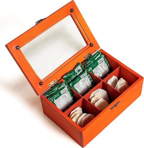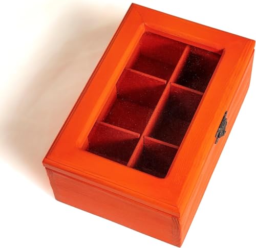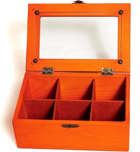 Generic - علبة شاي 6 خانات من ❤ أركت نورة ❤ خشب طبيعي مصري بتصميم يدوي أنيق (برتقالي)