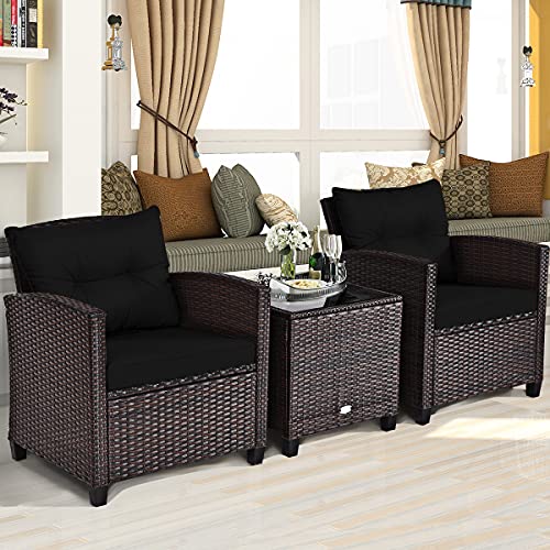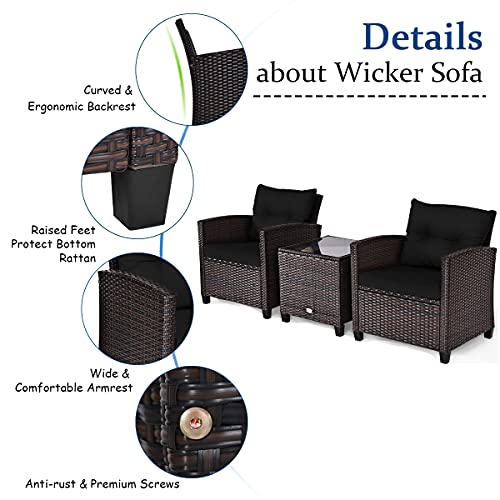 ARLIME - طقم أثاث أنيق مصنوع من راتان البولي ايثيلين ومكون من 3 قطع للفناء الخارجي من ارلايم، مناسب لجميع الأحوال الجوية، كنبة مقسمة بمخدة قابلة للإزالة والغسل وكرسي وطاولة للحديقة والشرفة وحمام السباحة، أسود