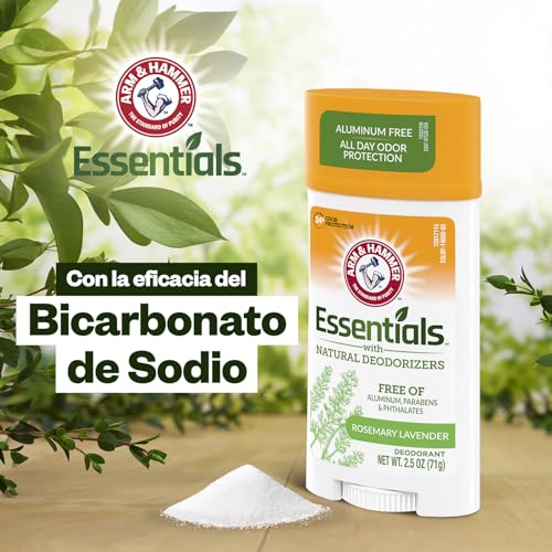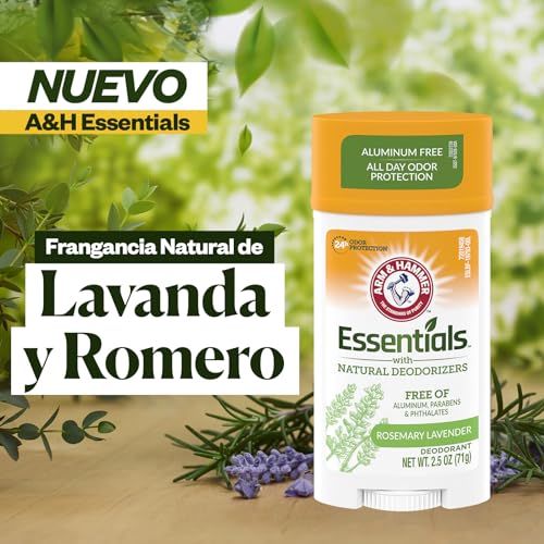 ARM & HAMMER - ارم اند هامر مزيل عرق برائحة اللافندر والروزماري من اسينشالز، تركيبة طبيعية، خالي من الالومنيوم والبارابين، حماية من الروائح الكريهة على مدار 24 ساعة، 2.5 اونصة، للجنسين