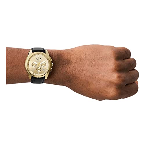 Armani Exchange - ساعة للرجال بحركة كوارتز وانالوج بعقارب وبسوار جلد، يدوية ودائرية، AX2861 من ارماني اكستشينج, ذهبي
