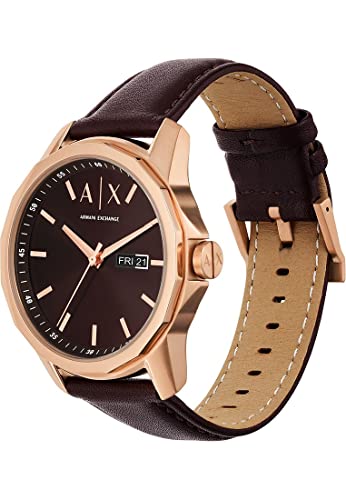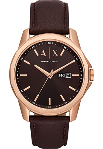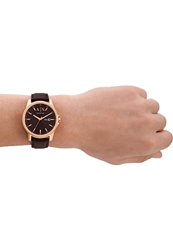 Armani Exchange - ساعة كاجوال للرجال بحركة كوارتز/3 عقارب واليوم والتاريخ من ارماني اكستشينج، سوار بني -AX1740