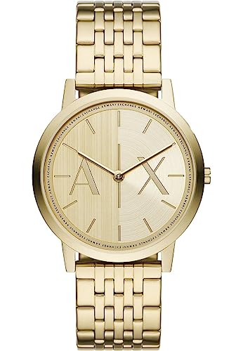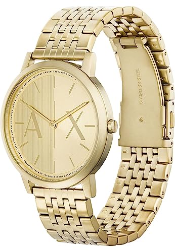Armani Exchange - ساعة للرجال من ارماني اكستشينج مصنوعة من الفولاذ المقاوم للصدأ بعقربين، لون ذهبي، موديل AX2871