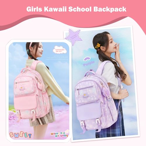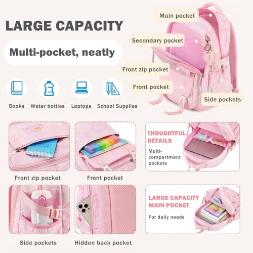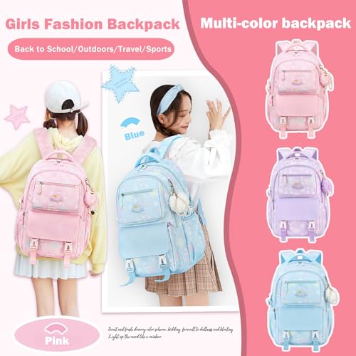 Armbq - شنطة ظهر للبنات من ارمبكيو، شنطة ظهر مدرسية لطيفة للبنات المراهقات، شنطة كتب للمدرسة الابتدائية متعددة الجيوب