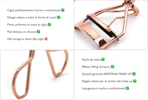 ARMONIA MAKE UP - أداة تجعيد الرموش الاحترافية، أداة تمويج الرموش مع وسادة سيليكون ناعمة، أداة تجعيد الرموش الصناعية والطبيعية، أداة تمويج الرموش من الستيل من ارمونيا ميك اب، ذهبي وردي