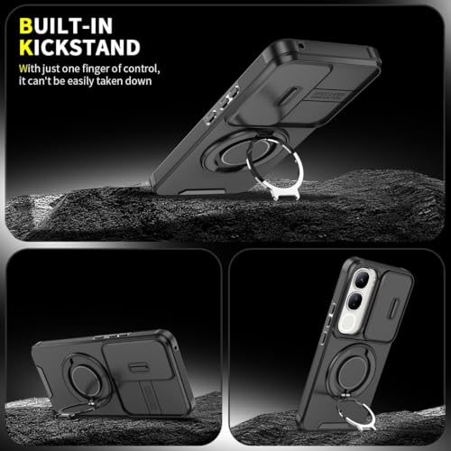 Generic - جراب ارمور لموبايل فيفو V40 لايت - غطاء مقاوم للصدمات شديد التحمل مع حامل حلقي مغناطيسي ومسند قابل للطي (حماية من الدرجة العسكرية) - أسود
