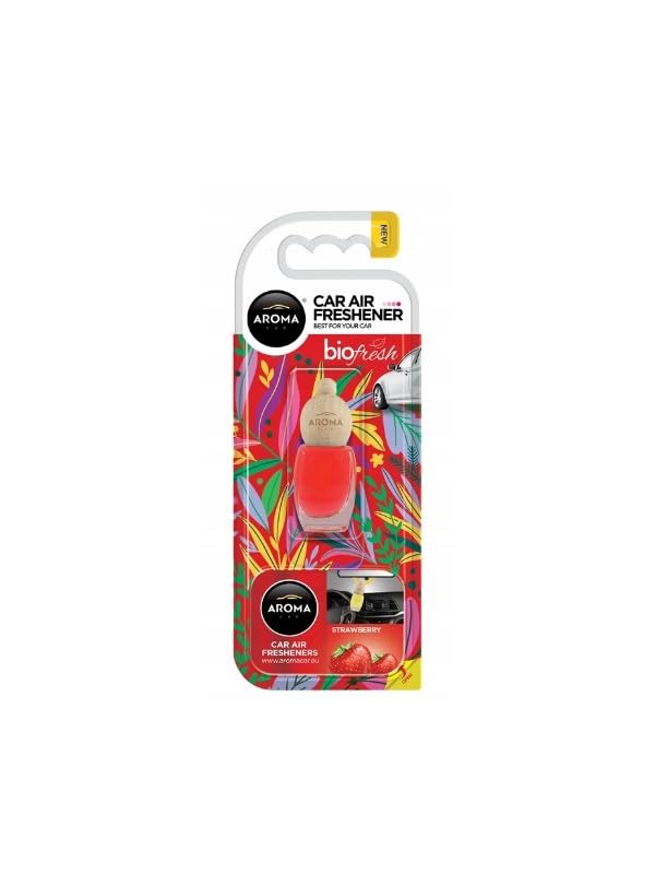 Aroma - معطر سيارة بيو فريش برائحة الفراولة يدوم طويلا من اروما، رائحة فراولة طبيعية، سهل الاستخدام، عطر منعش للسيارات - سعة 8 مل