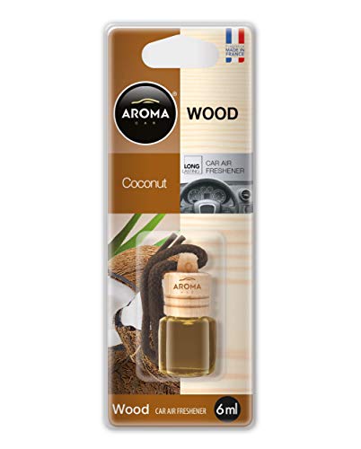 Aroma Car - معطر جو خشبي للسيارات بعطر طبيعي برائحة جوز الهند للانتعاش بصالون السيارة من اروما، 6 مل