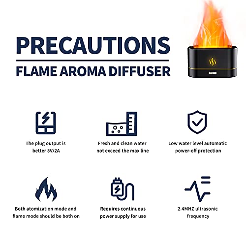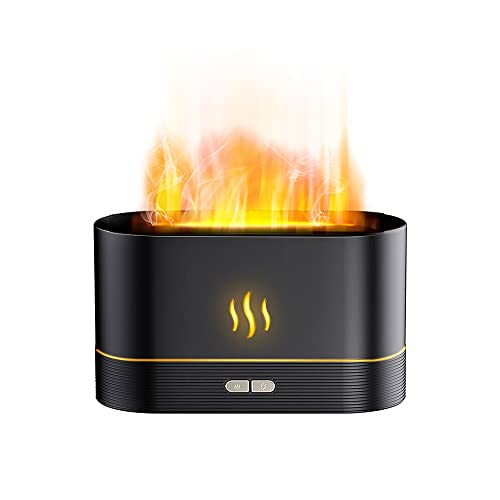 Supwell - موزع روائح عطرية مع شعلة إضاءة بنمط لهب، مرطب للهواء مع خاصية الإغلاق التلقائي عند نفاذ الماء للمنتجعات الصحية والمنزل واليوجا والمكتب وغرفة النوم (أسود)
