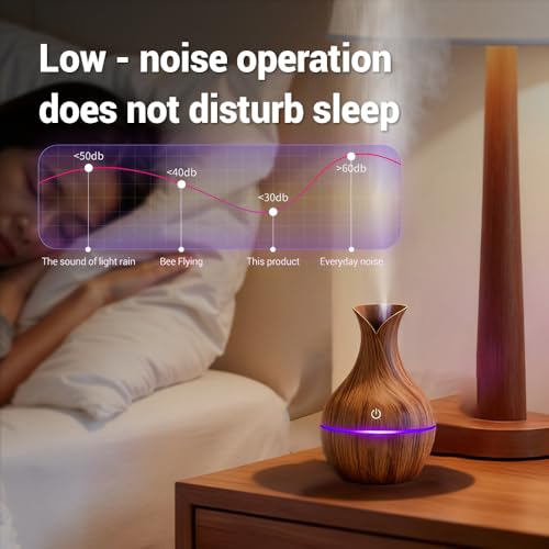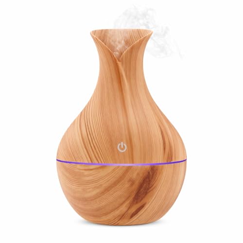 Generic - موزع روائح الزيوت العطرية من الخشب الحبيبي سعة 130 مل بالموجات فوق الصوتية مع ضوء LED، تشغيل هادئ للمنزل وغرفة النوم والمكتب