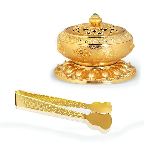 Generic - مساكة للعلاج العطري - ادوات معدنية صغيرة لمعالجة البخور والفحم، لمسة نهائية ذهبية، عبوة مزدوجة لوضع سهل وآمن