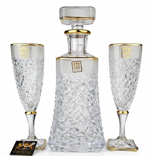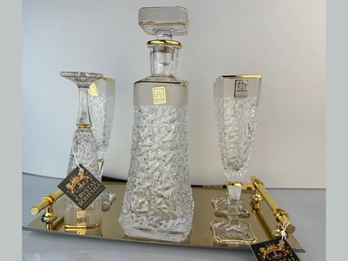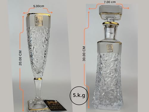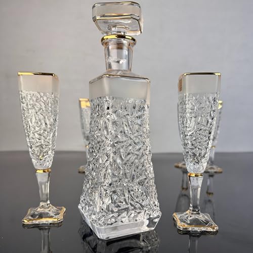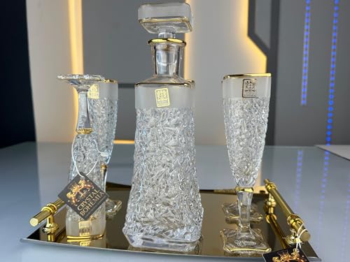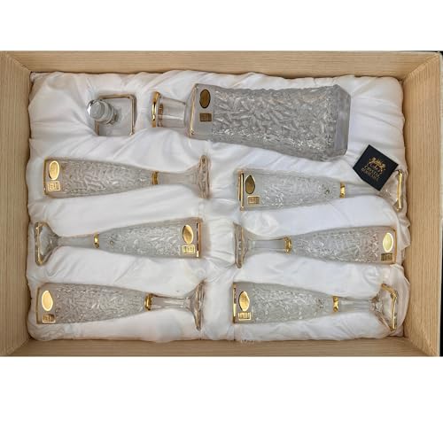 Generic - طقم شربات أريزو كريستال بوهيمي مطلي بالذهب ومصنفر – قارورة و6 كاسات