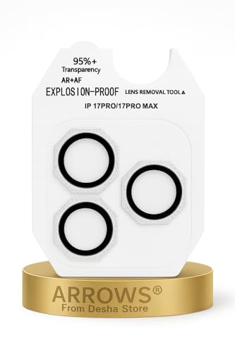 ARROWS - واقي عدسة الكاميرا السداسي من اروز متوافق مع ايفون 17 برو ماكس/ 17 برو - زجاج مقوى بدرجة صلابة 9 مع حلقة معدنية من الماس، مقاوم للخدش والصدمات، شفافية عالية، سهل التركيب - فضي