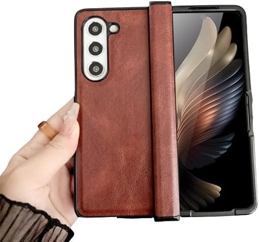 ARROWS - جراب موبايل جلد قابل للطي مع غطاء إطار صلب من البولي كربونات وحماية كاملة للهيكل من الأمام والخلف لموبايل سامسونج جالاكسي Z فولد 7 من اروز، بني