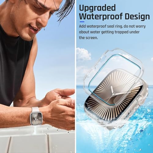 ARROWS - جراب حماية ممتص للصدمات من الزجاج المقوى لساعة آبل ووتش سلسلة 10 مقاس 46 ملم، غطاء مقاوم للماء من البولي كربونات الصلب مع شاشة حماية كاملة من اروز (شفاف، سلسلة آبل 10 مقاس 46 ملم)