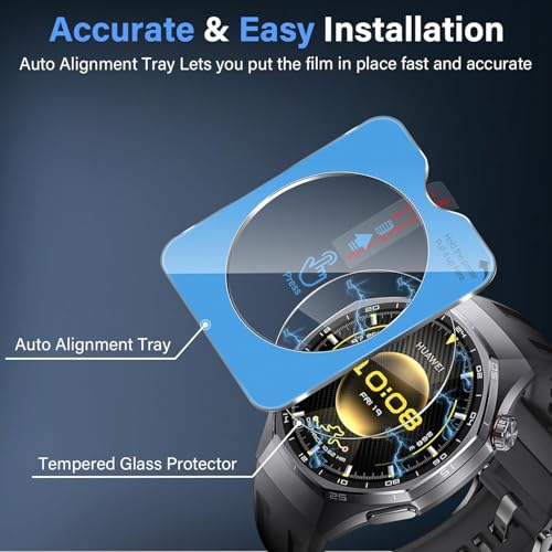 ARROWS - شاشة حماية من الزجاج المقوى من اروز لساعة هواوي GT6 برو 46 ملم، مجموعة تركيب بمحاذاة تلقائية، صلابة 9، تركيب خالٍ من الفقاعات