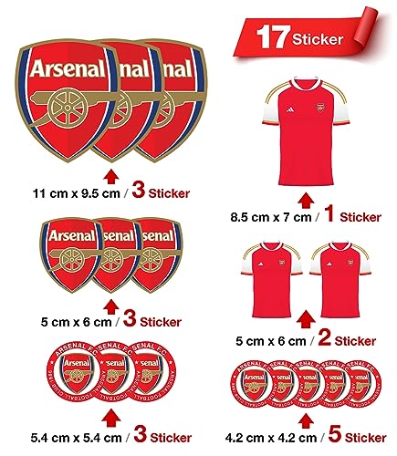 Generic - مجموعة ستيكر لاصق مقاوم للماء والغبار بشعار نادي كرة القدم ارسينال للسيارات واللاب توب والموبايلات والموتوسيكلات وشنط السفر ولوح التزلج والجدران، أحمر لامع، 17 قطعة