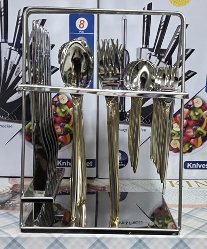 Generic - طقم ملاعق وسكاكين من أرشيا، مكون من 30 قطعة، باللون الفضي مع لمسات ذهبية