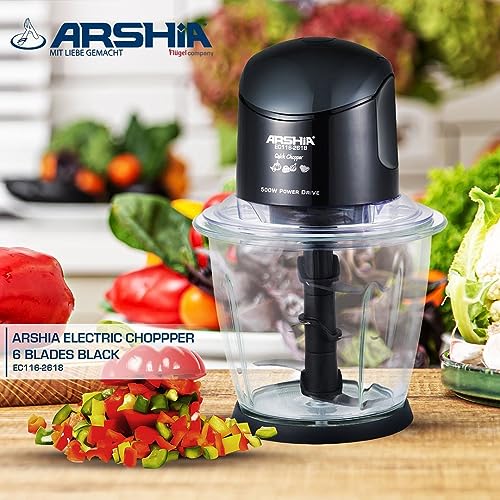 Arshia - مفرمة كهربائية ارشيا EC116-2618 بستة شفرات اسود 1.5 لتر تشغيل بلمسة واحدة ضمان 18 شهر 500 واط قطاعة 6