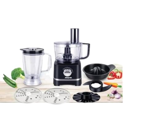- محضر طعام ارشيا-AS2005-8015 الجهد: 220-240 فولت ~ 50/60 هرتز محرك قوي بقوة 500 واط تصميم أنيق/أنيق وصغير الحجم، مع زخرفة الفولاذ المقاوم للصدأ 2 سرعة واختيار النبض 8 مرفقات متغيرة ومريحة متعددة الوظائف: التقطيع، العجن، التقطيع، التقطيع، الخفق، المزج، الجاف طحن، الحمضيات عصارة 18 وعاء خلط ومعالجة 2 لتر صَحن