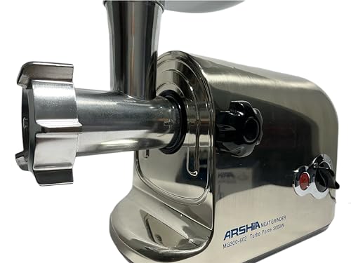 - مفرمة لحم ارشيا MG300-602, مفرمة لحم تروس من الفولاذ دقة قوية، قدرة فرم تصل إلى29 كجم في الدقيقة ملحقات صحية من الفولاذ قرص طحن صحي من الستانلس ستيل محرك للاستخدام المنزلي فقط موافقة السلامة 220-240V-50,60HZpower3000W كحد أقصى