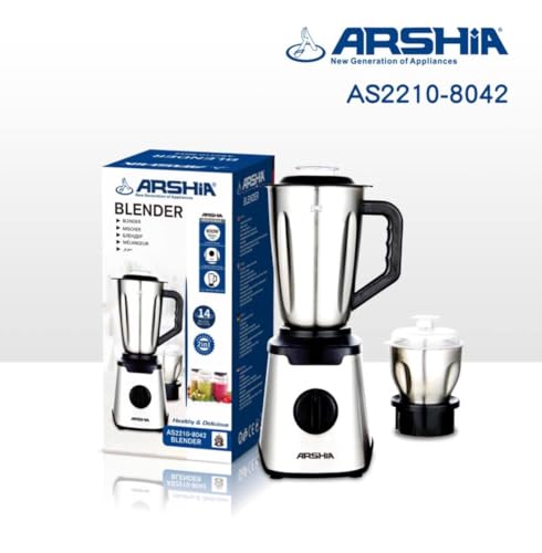 - خلاط ارشيا AS2210-8042 2 سرعة للتحكم بالنبض وظيفة المطحنة وعاء ستانلس ستيل سعة 15 لتر شفرة الفولاذ المقاوم للصدأ قوية بما فيه الكفاية الأجزاء القابلة للفصل آمنة للاستخدام في غسالة الأطباق أقدام غير قابلة للانزلاق يتوقف مفتاح قفل السلامة عن العمل أثناء التثبيت بشكل غير صحيح الحماية التلقائية من الحرارة الزائدة محرك تيار متردد 220 - 240 فولت، 50/60 هرتز، 600 وات